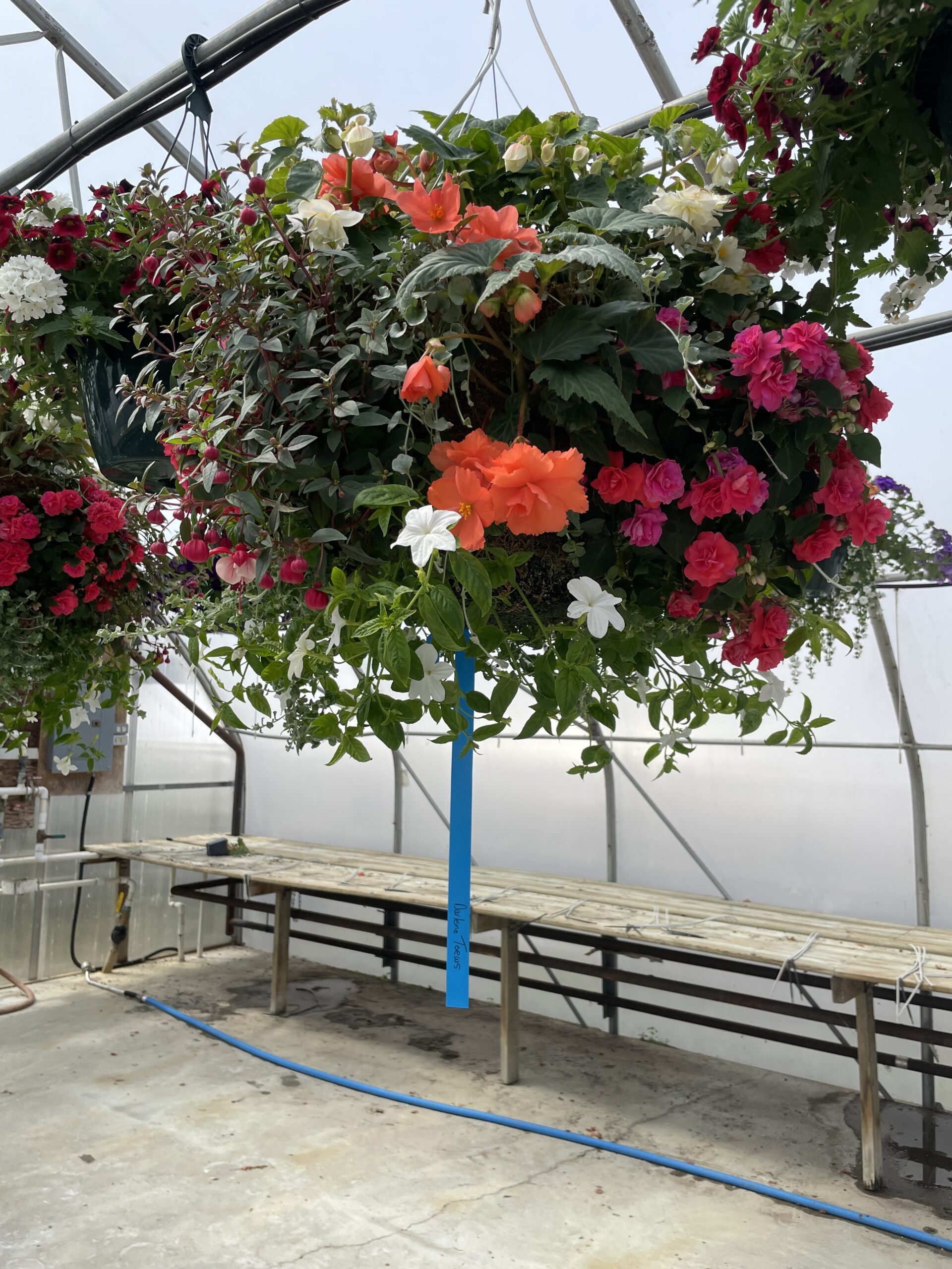 These are moss baskets created for shade areas or areas that only get the morning sun.  These baskets have begonias, fuchsias and other trailing plants that thrive in shady areas. Product may not be exactly like the picture show.